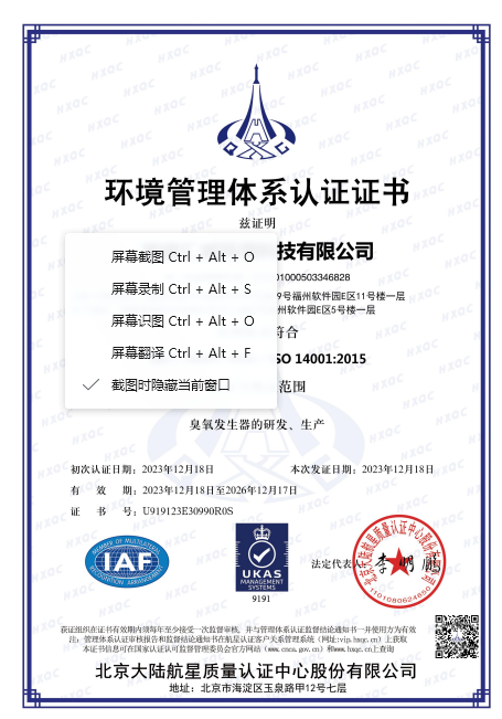對(duì)于來料匯威嚴(yán)把質(zhì)量關(guān),精選每個(gè)部件的供貨商,同時(shí),匯威建立了72小時(shí)老化體系,每一臺(tái)臭氧發(fā)生器的出廠都要經(jīng)過嚴(yán)格的測試,保證品質(zhì)。